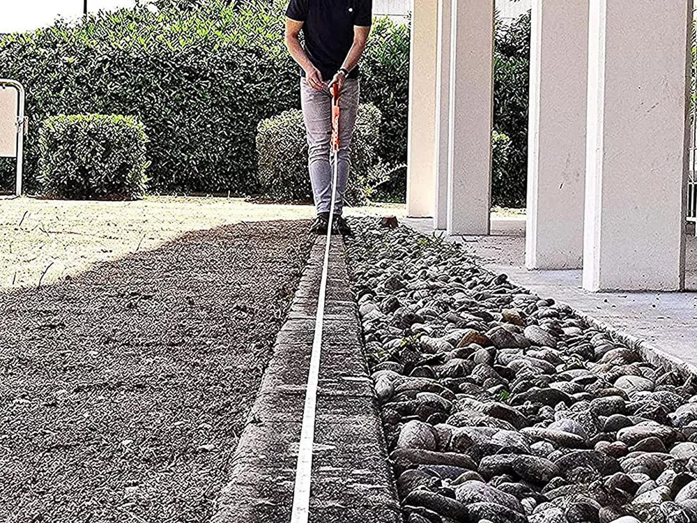 Egy 30 méteres, tartós mérőszalag jó választás lehet nagyobb távolságokhoz.