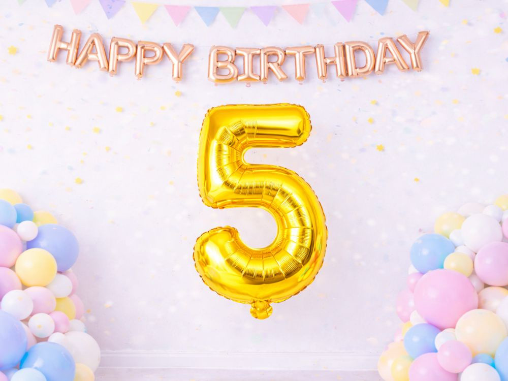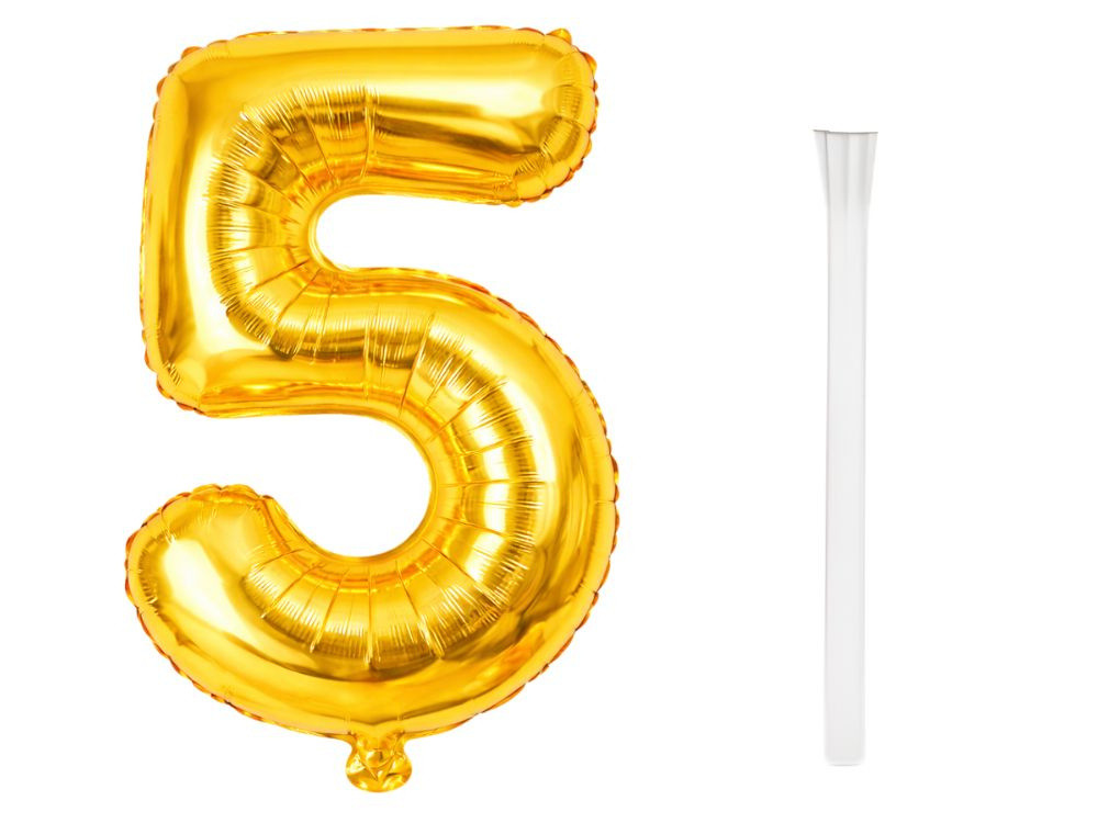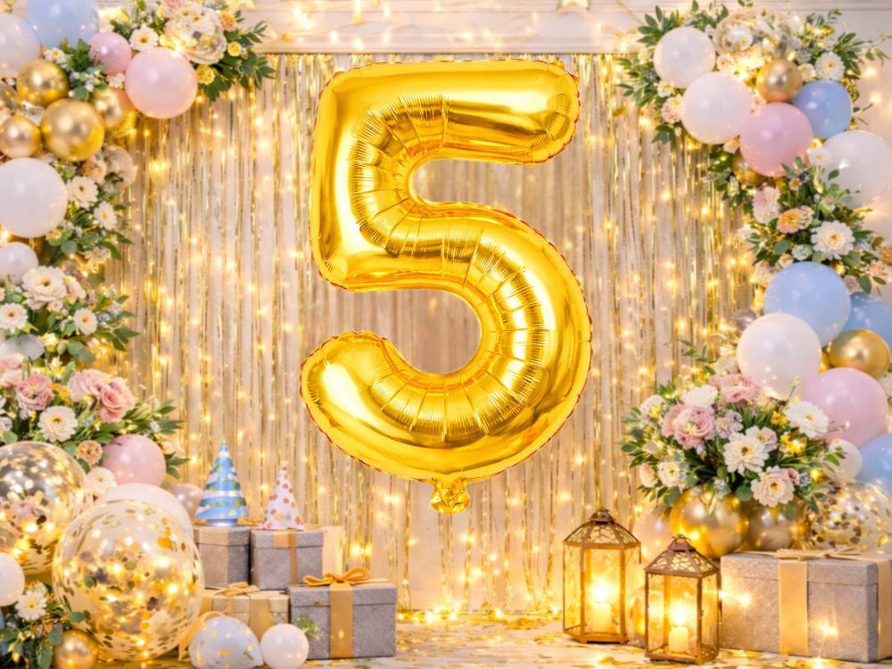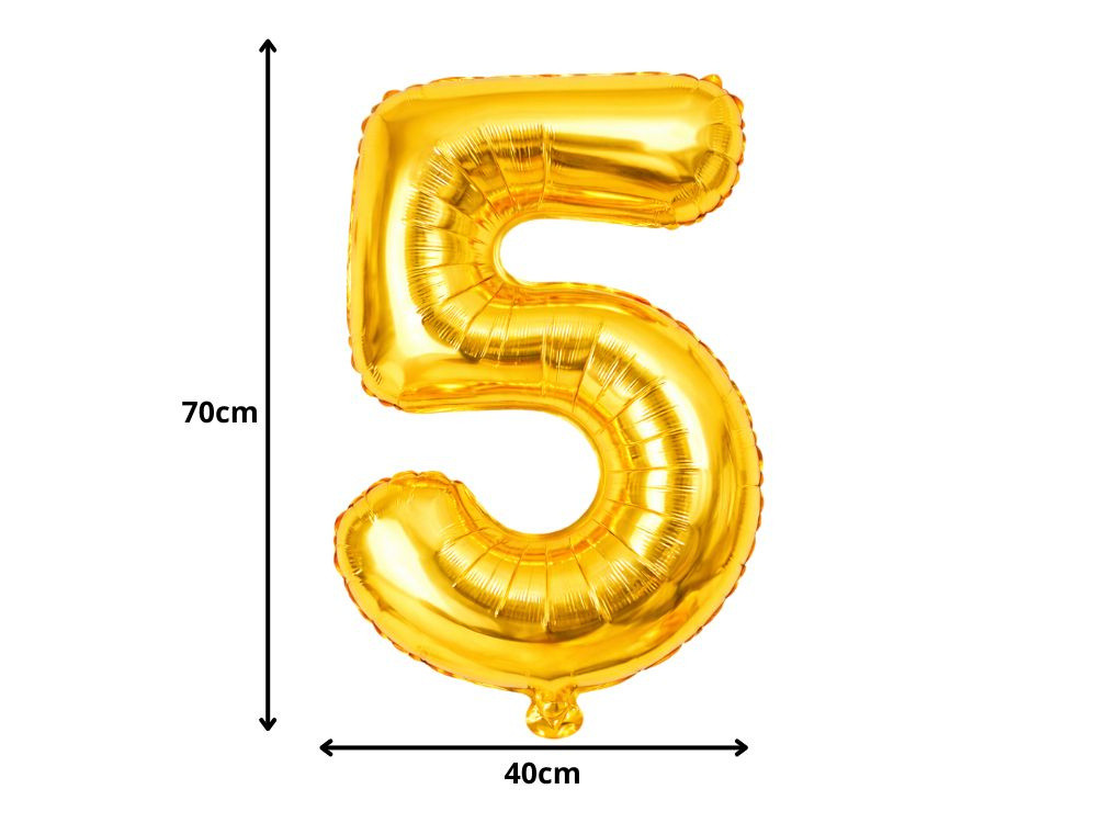 Szám alakú lufikkal, például arany 5-ös lufival.