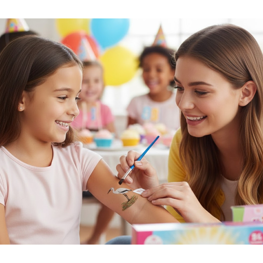 A csillámtetoválás az egyik legnépszerűbb testfestési és díszítési forma világszerte. Gyerekek és felnőttek egyaránt imádják, mert látványos, vízálló és akár több napig is tartós. Tökéletes választás bulikra, rendezvényekre, esküvői kiegészítőnek vagy kreatív családi programhoz.