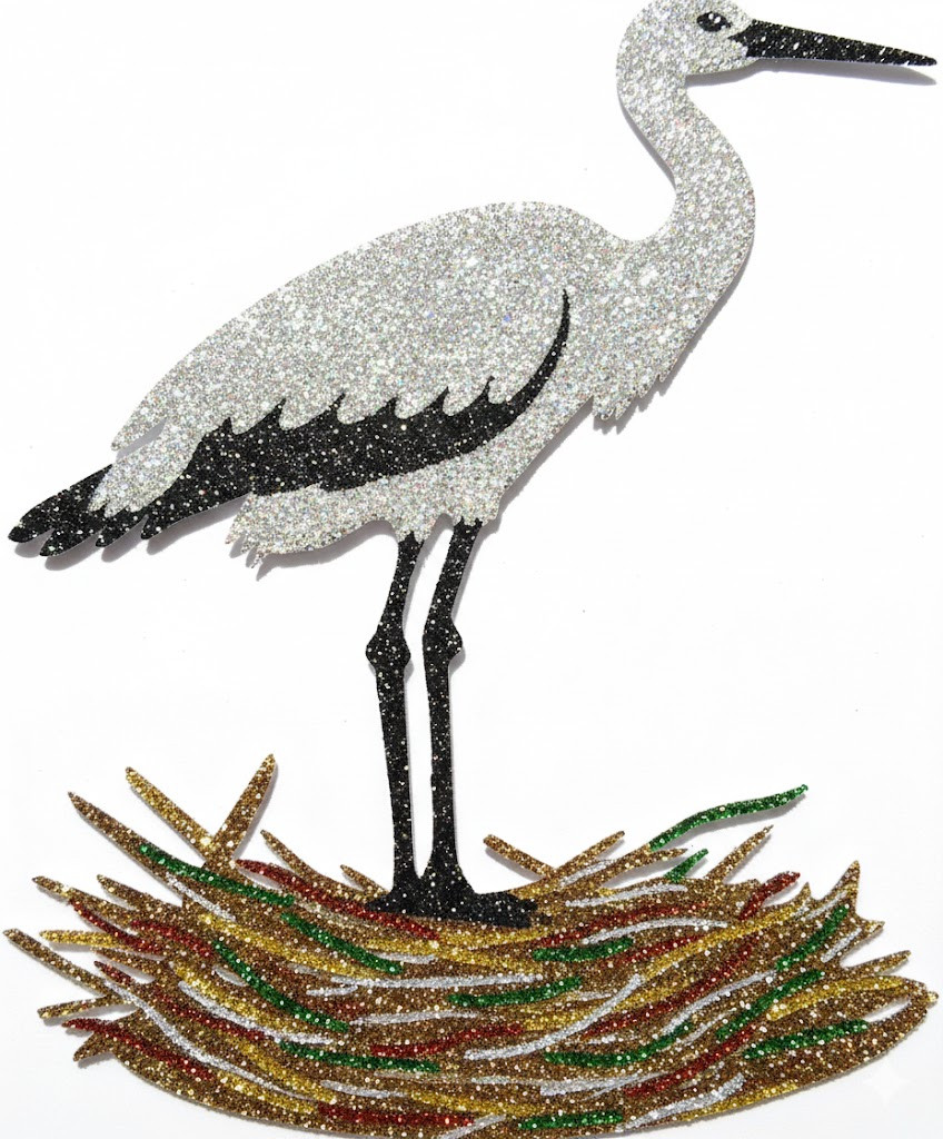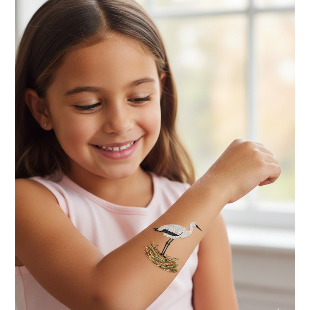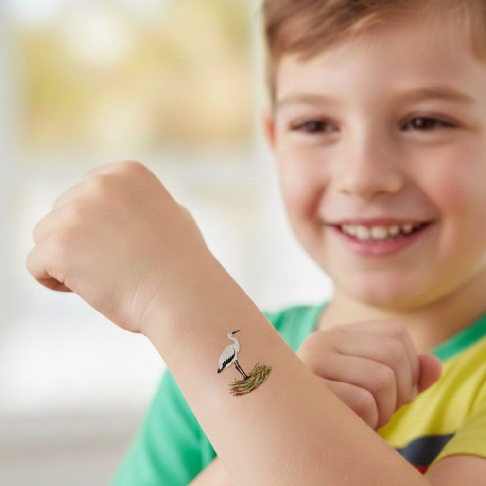 Gólya Fészekben Csillámtetoválás Sablon – 8×5 cm-es Öntapadós Festősablon