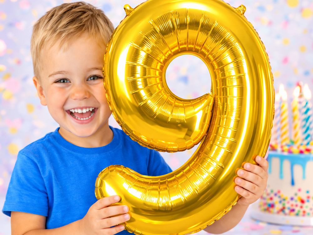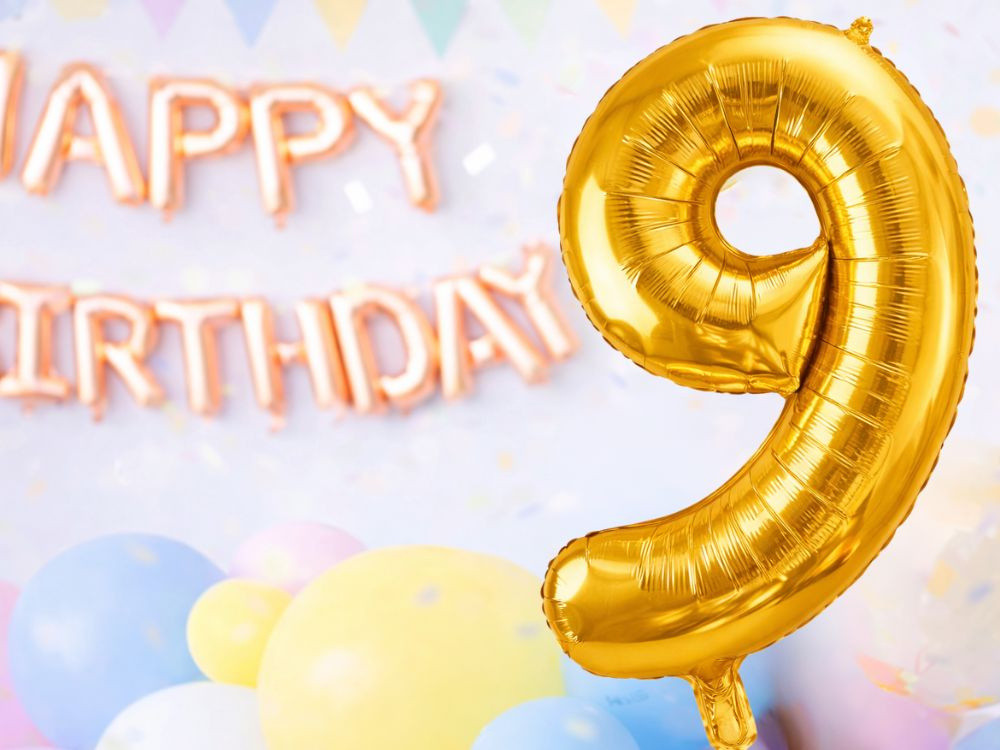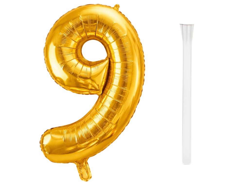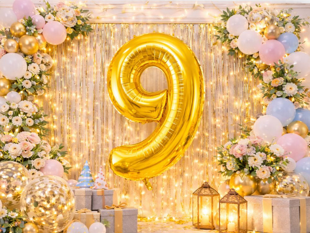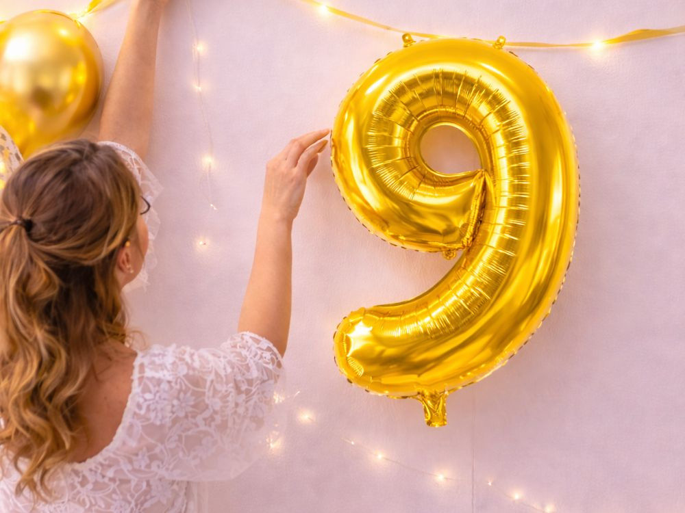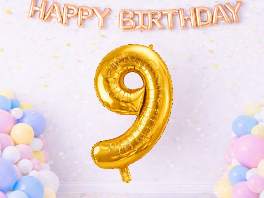 Szám alakú lufikkal, például arany 9-es lufival.