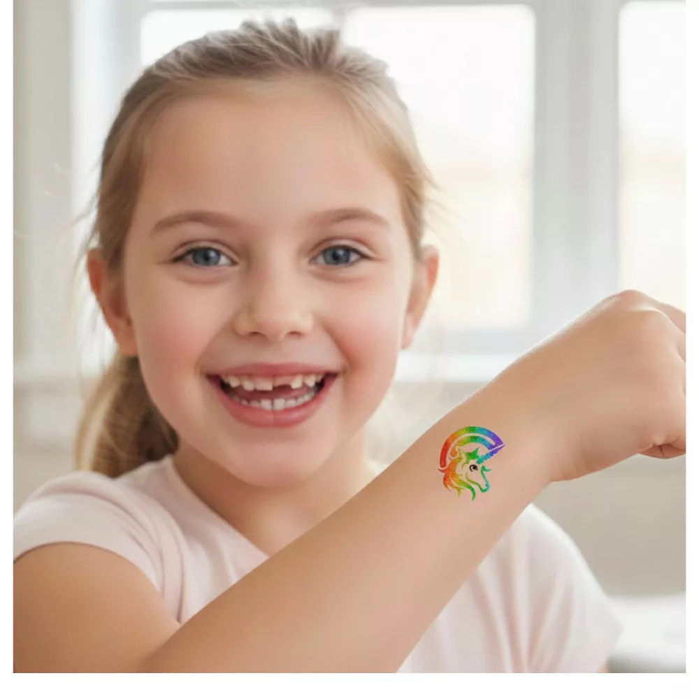 Keltsd életre a mesét egy csillogó unikornissal! Ez a sablon a kislányok abszolút kedvence, amivel pillanatok alatt profi és tartós testdíszt készíthetsz.