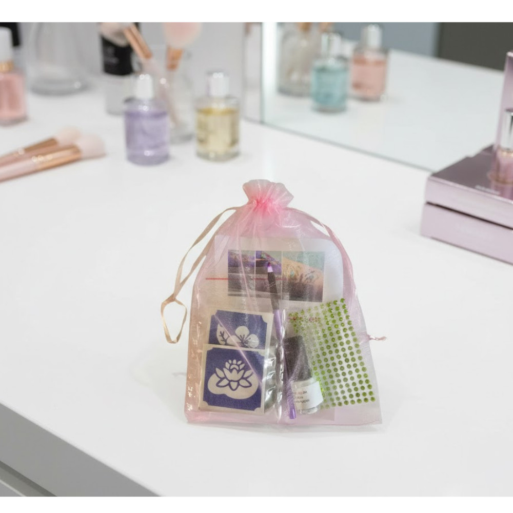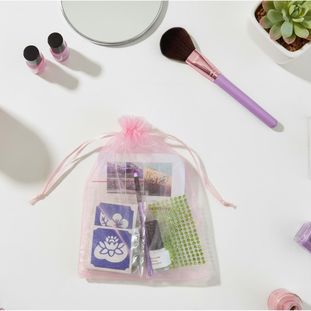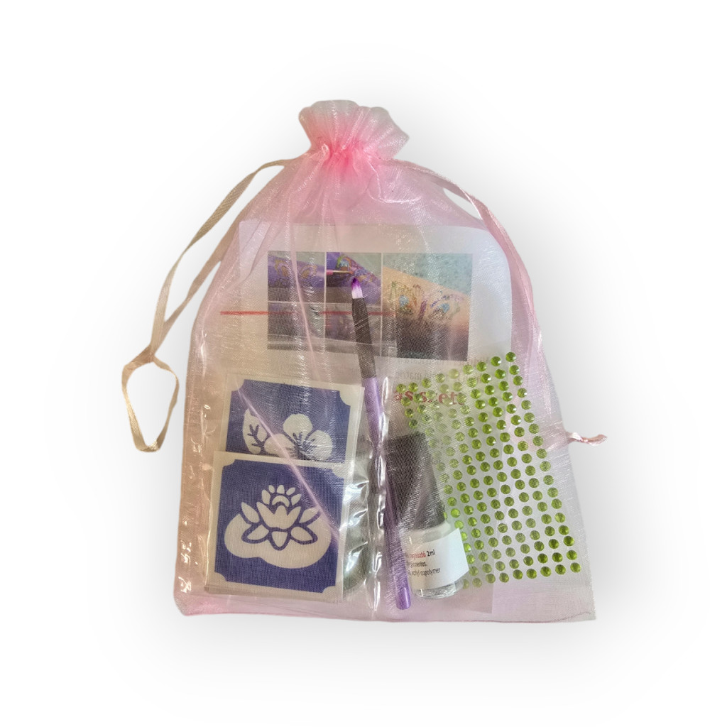 KiviArt Csillámtetoválás Készlet – Virágos Mintákkal (Organza Tasak)