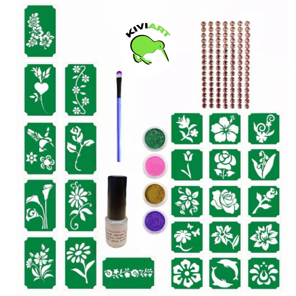 KiviArt Csillámtetoválás szett - Virágok 32 darabos