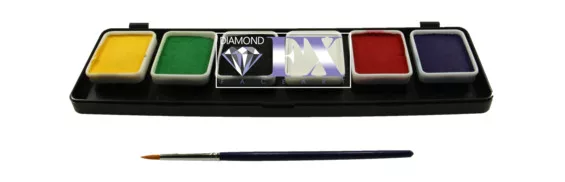 A Diamond FX a világ egyik legismertebb és legelismertebb arcfesték márkája, amelyet a professzionális arcfestők és testfestők imádnak precizitása és élénk színei miatt. Termékeik kiváló minőségűek, bőrbarátak és rendkívül pigmentáltak, garantálva a látványos és tartós eredményt. Ez a 6 alapszínű, kisebb kiszerelésű készlet egy ideális belépő a Diamond FX világába, vagy egy praktikus utazó készlet.