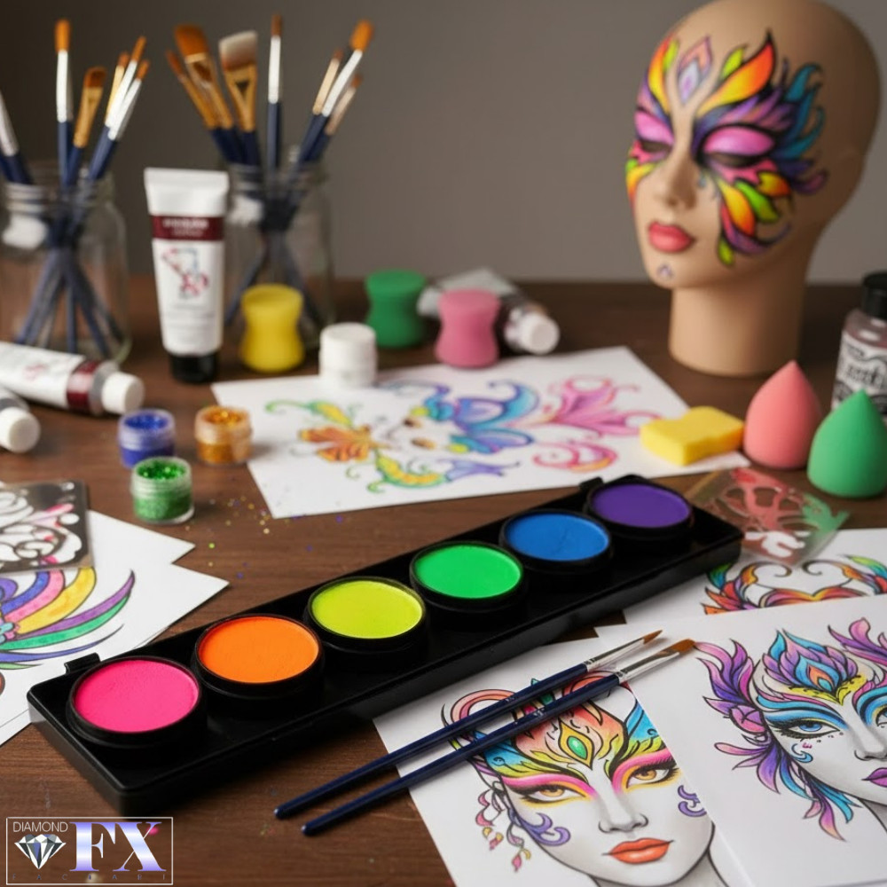 Diamond FX 6 Színű Arcfesték Készlet – NEON Színek: Ragyogj a Fényben és a Sötétben is!