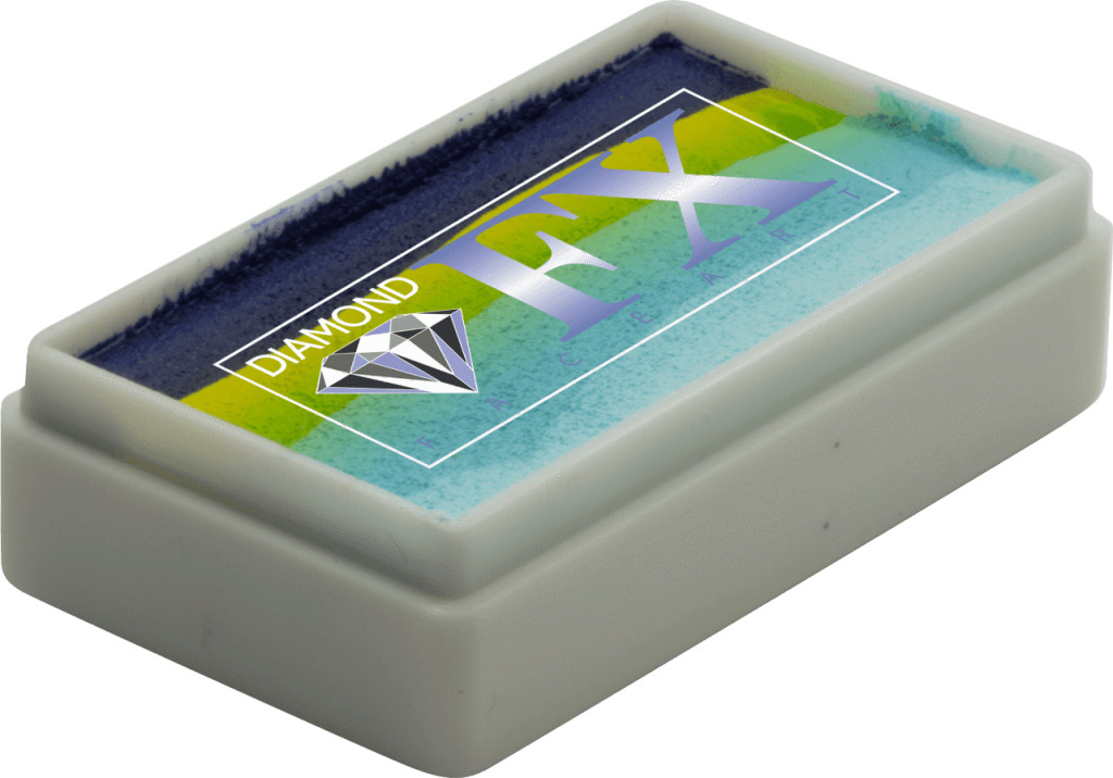 A Diamond FX a világ egyik legismertebb és legelismertebb arcfesték márkája. A "csíkos festék" (más néven "split cake" vagy "rainbow cake") termékei forradalmasították az arcfestést, lehetővé téve a gyors, de rendkívül látványos színátmenetek és minták elkészítését. A Beach Front árnyalat egy üdítő, a homokos partot és a kék óceánt idéző színösszeállítás, amely tökéletes sellőkhöz, cápákhoz, vízicsúszdás eseményekhez és minden nyári témájú festéshez.