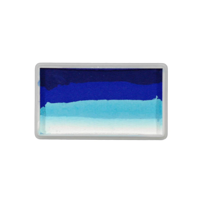 Ez egy professzionális, 28 grammos, préselt, vízbázisú, csíkos arcfesték blokk. Ez a blokk több, gondosan összeválogatott, hűvös, kék tónusú sávból áll, amelyek tökéletesen egymásba olvadnak felvitelkor. A színek tipikusan a következők: