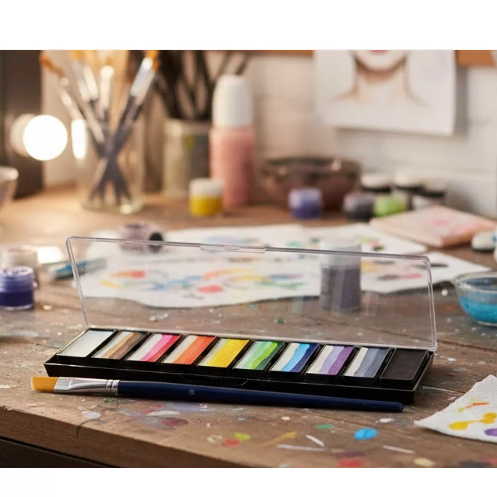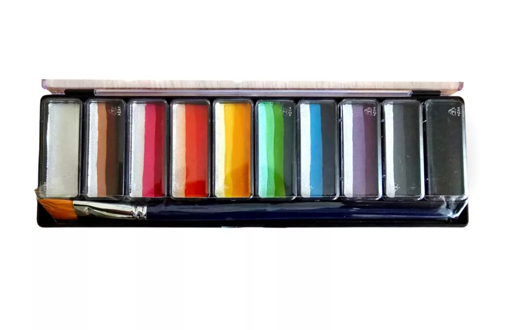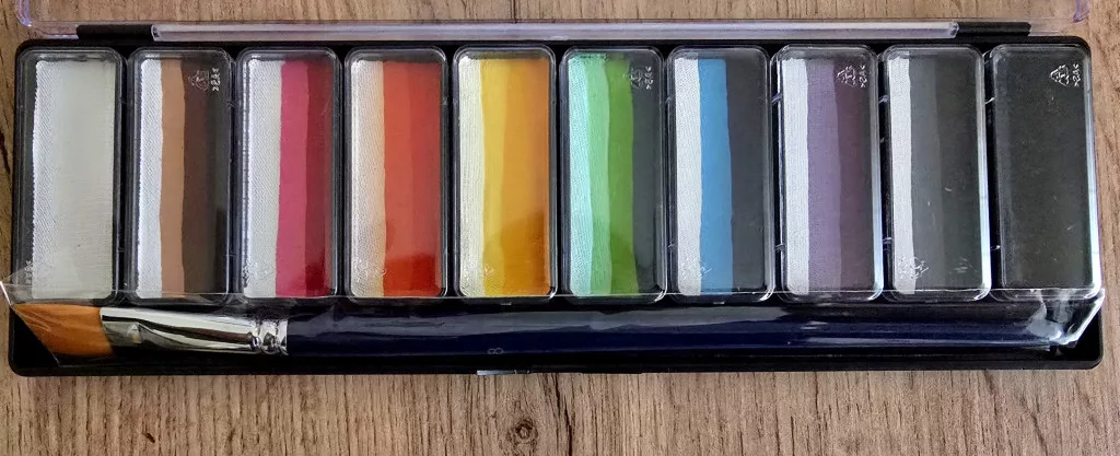 - "One Stroke" Technika: A paletta lényege az "egy mozdulat" (one stroke) technika. Egy lapos ecsetet áthúzva a festékblokkon, az ecset felveszi az összes színt, amit aztán egyetlen mozdulattal felvihetsz a bőrre, tökéletes színátmenettel.