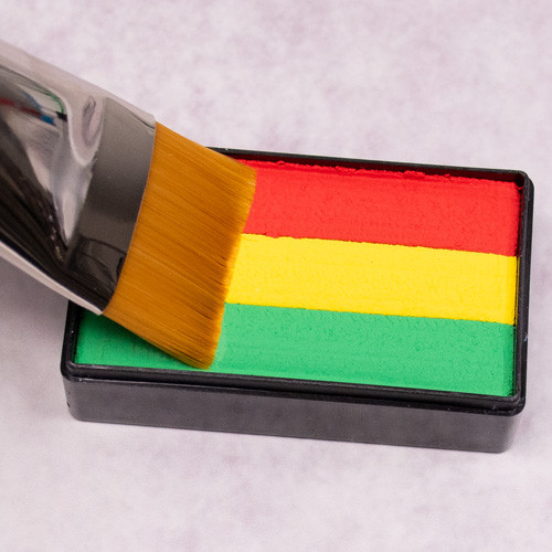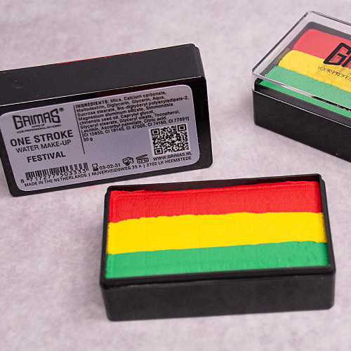 A Grimas One-Stroke FESTIVAL egy négyszögletes arcfesték, amely több színt tartalmaz vékony csíkokban elrendezve. Lehetővé teszi, hogy egyetlen ecsetvonással gyönyörű, többszínű mintákat (például virágokat, szivárványokat, pillangókat) hozzunk létre. A "FESTIVAL" változat a mélyvörös (505), élénksárga (203) és élénkzöld (407) színeket kombinálja.