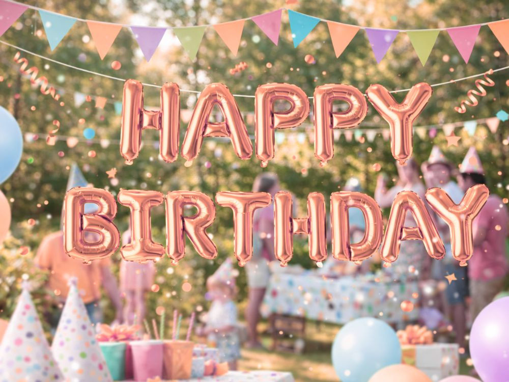 Egy látványos Happy Birthday lufi felirat az egyik legjobb alap dekoráció.