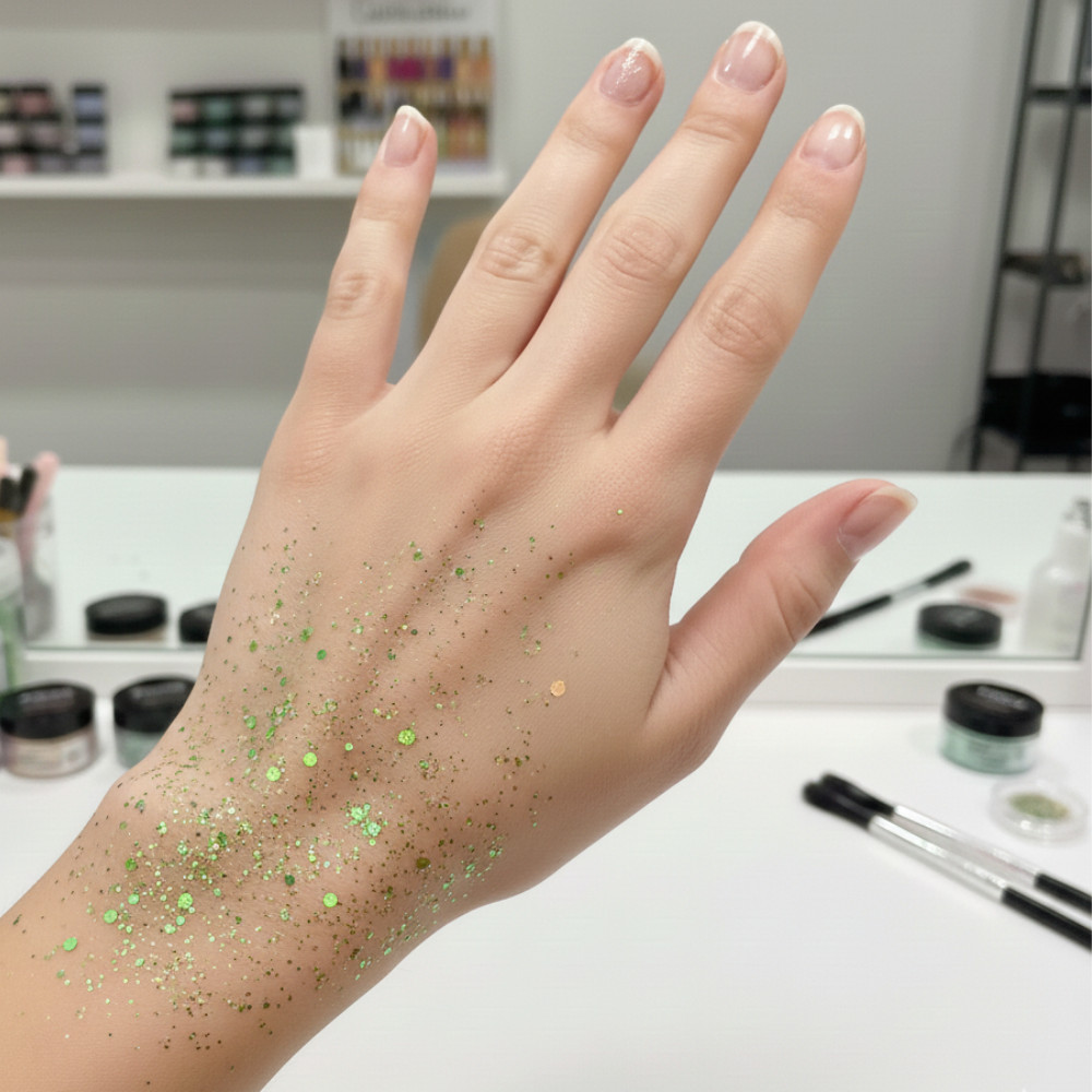 • Irizáló Effektek: A csillám színváltós hatású, ami növeli a smink dinamikáját és vizuális élményét.