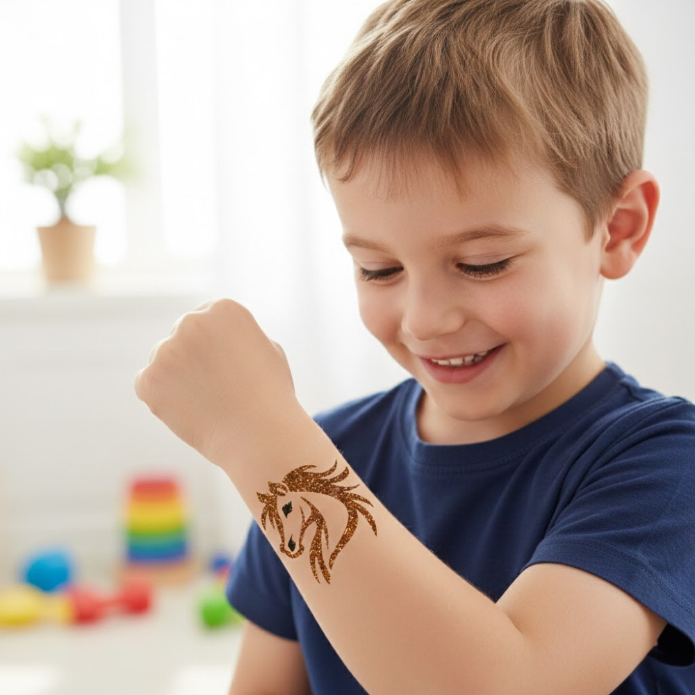 Alkosd meg saját lovas csillámtetoválásodat egyszerűen és látványosan! A KiviArt ló mintás öntapadós festősablon tökéletes választás csillámtetováláshoz, arc- és testfestéshez, henna festéshez, valamint textil és dekorációs tárgyak díszítéséhez. Gyerekeknek, lovas rajongóknak és kreatív alkotóknak egyaránt ideális.