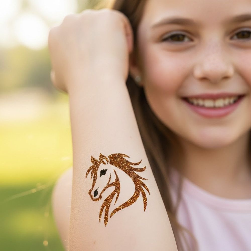 KiviArt Ló Csillámtetoválás Sablon – Öntapadós, háromrétegű festősablon