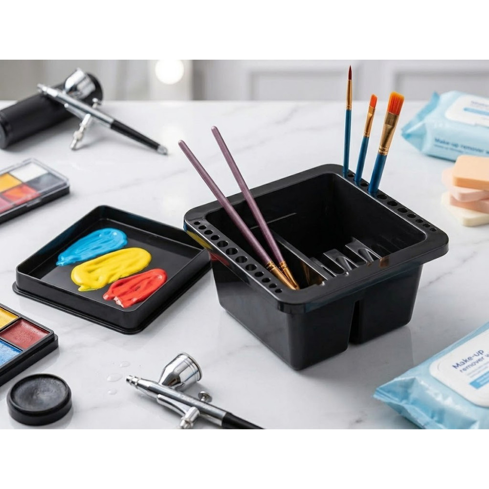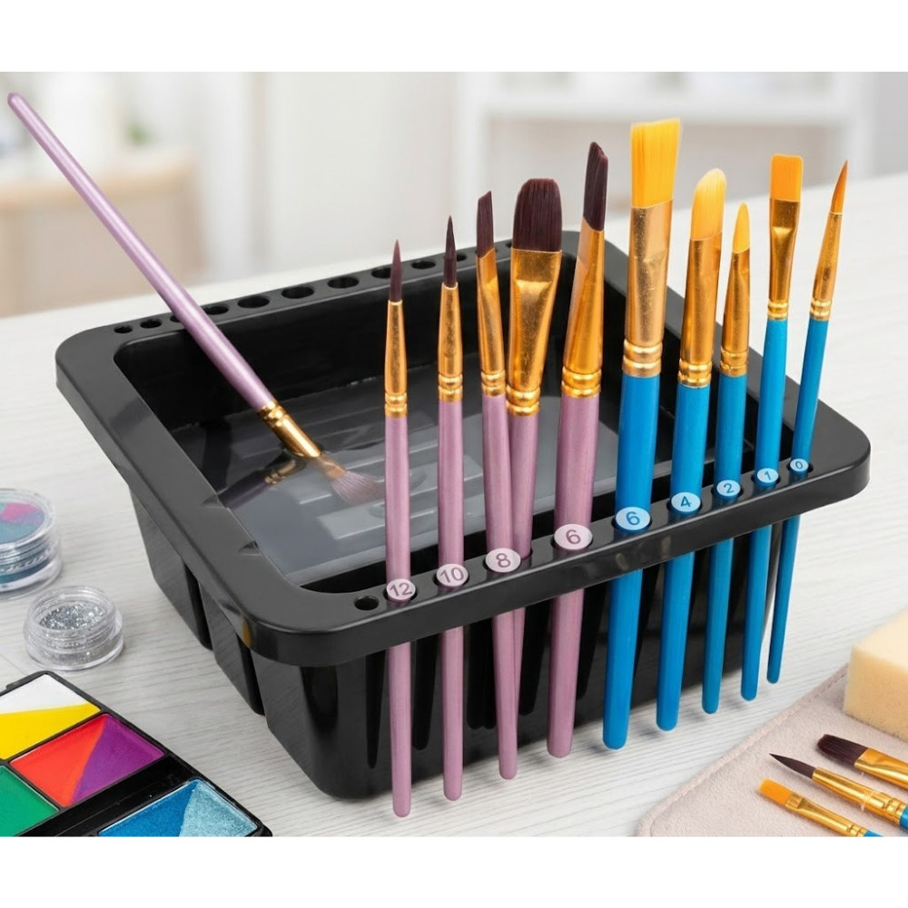 Ecsetek tisztítására, szárítására és rendszerezett tárolására szolgál festés vagy sminkelés után.