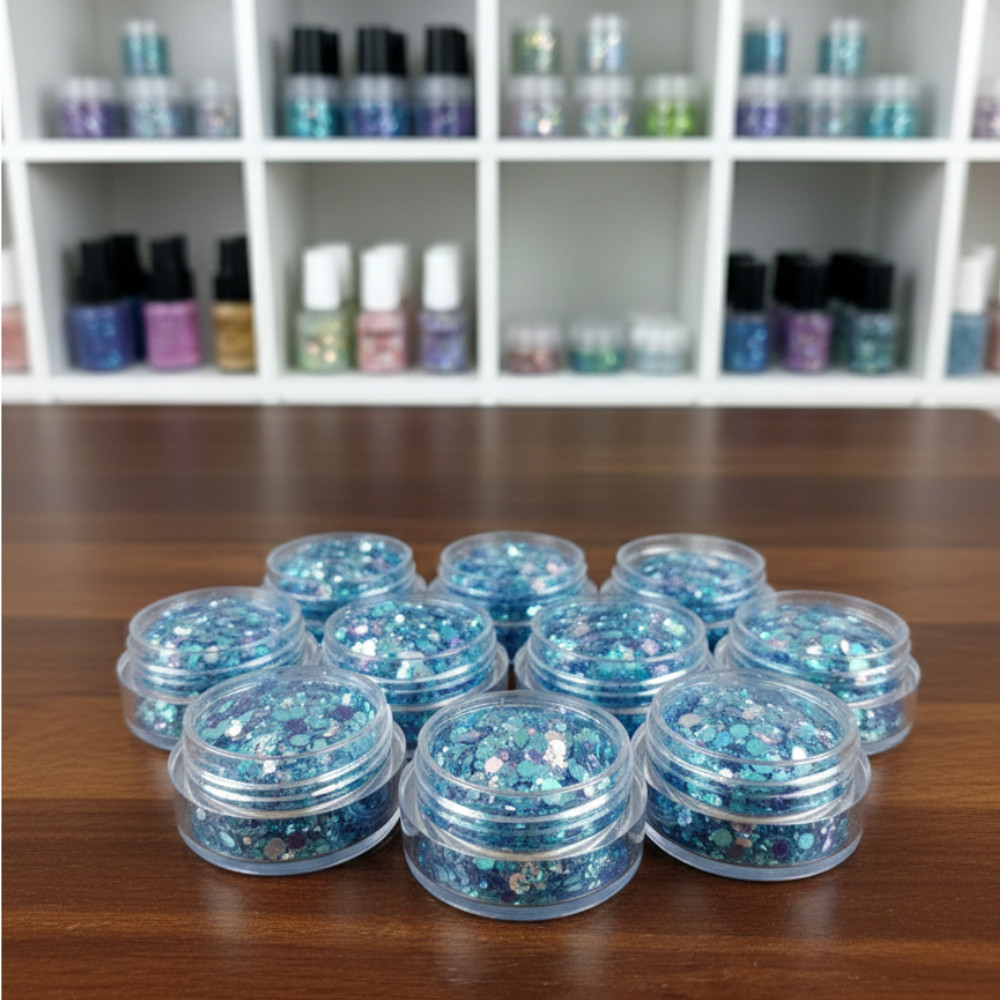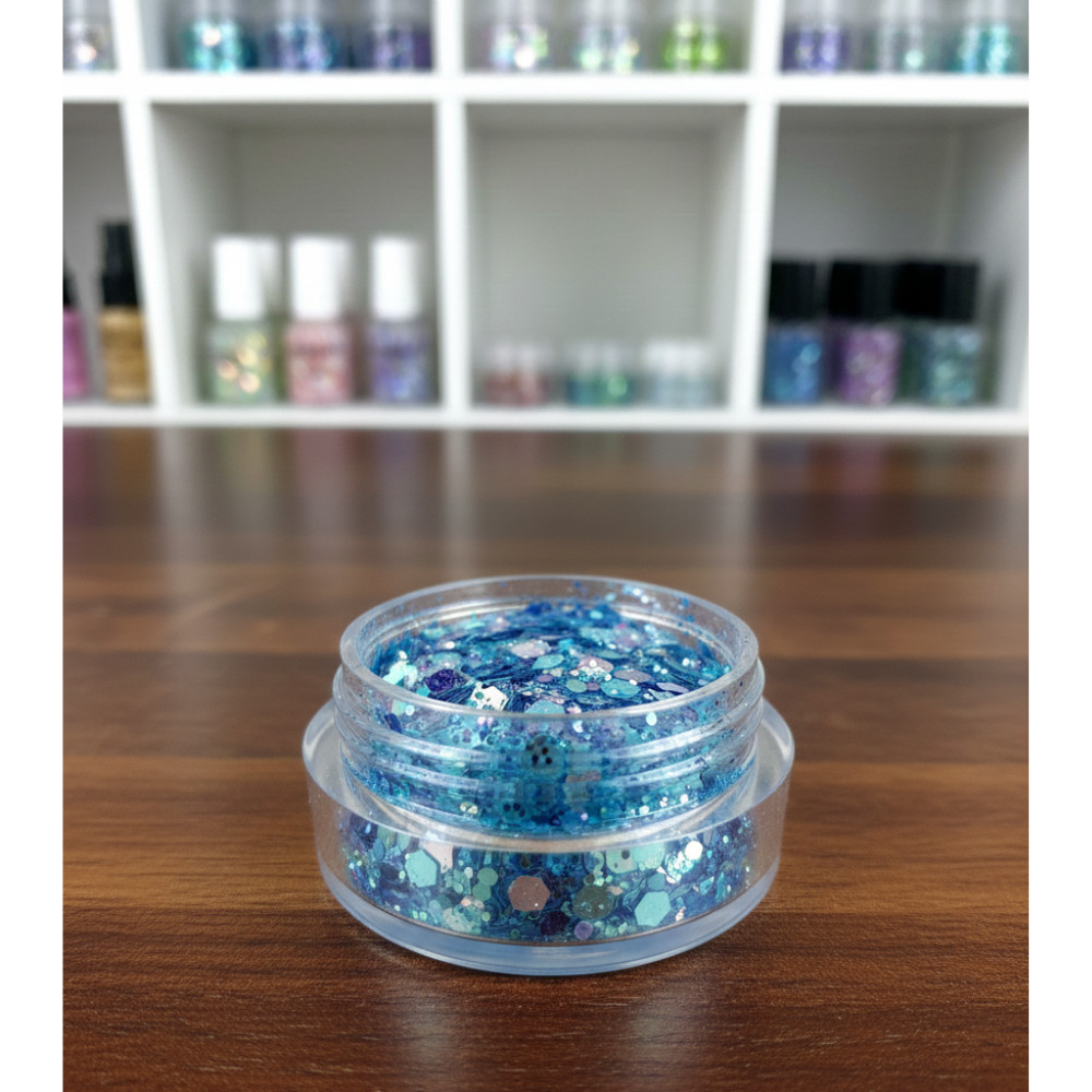 Ez a gazdag, többdimenziós textúrájú csillámkeverék garantálja, hogy a minták és sminkek extrém módon, látványosan tündököljenek, tökéletesen illeszkedve a téli, hercegnős vagy fagyos témákhoz.