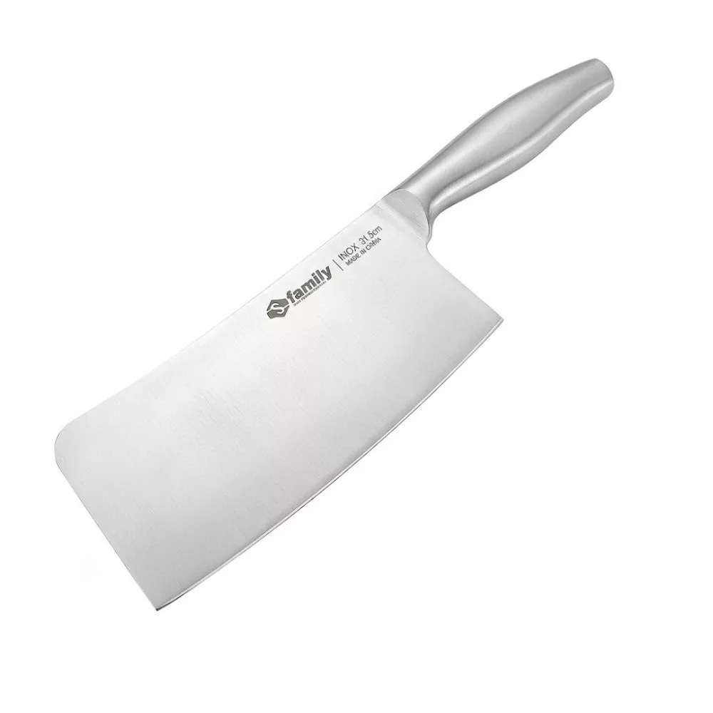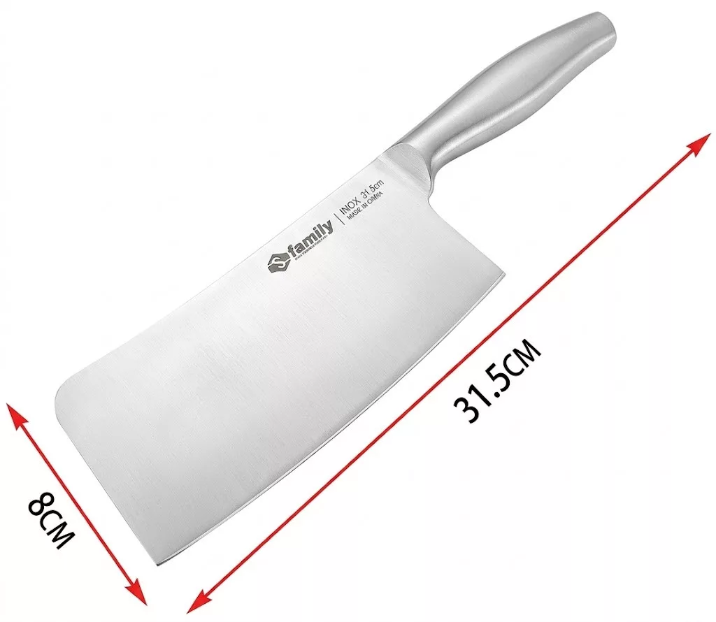 Mi is pontosan ez a termék? Egy egybefüggő, kiváló minőségű INOX rozsdamentes acélból készült konyhai bárd. A teljes hossza 31,5 cm, amiből a penge szélessége tekintélyes 8 cm. Ez a szélesség nemcsak a súlyt adja meg a vágáshoz, hanem lapátként is használhatod a felaprított alapanyagok serpenyőbe emeléséhez.