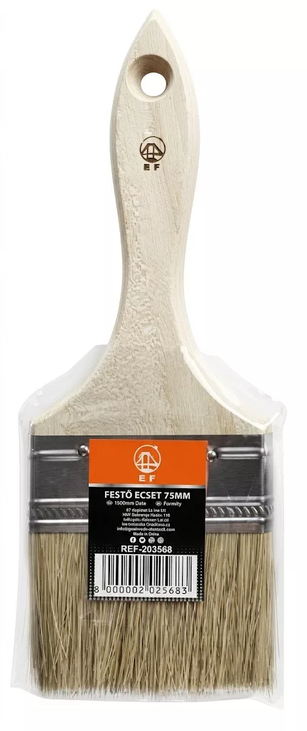 Ez a klasszikus kialakítású festőecset a tartósság és a praktikum ötvözete. A 75 mm-es szélesség az egyik legsokoldalúbb méret, hiszen elég széles a haladáshoz, de elég pontos a szélek eldolgozásához is.