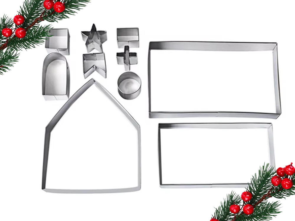 - 10 Darabos Szett: Minden szükséges forma egyben van egy teljes mézeskalács házikó vagy betlehem megépítéséhez.