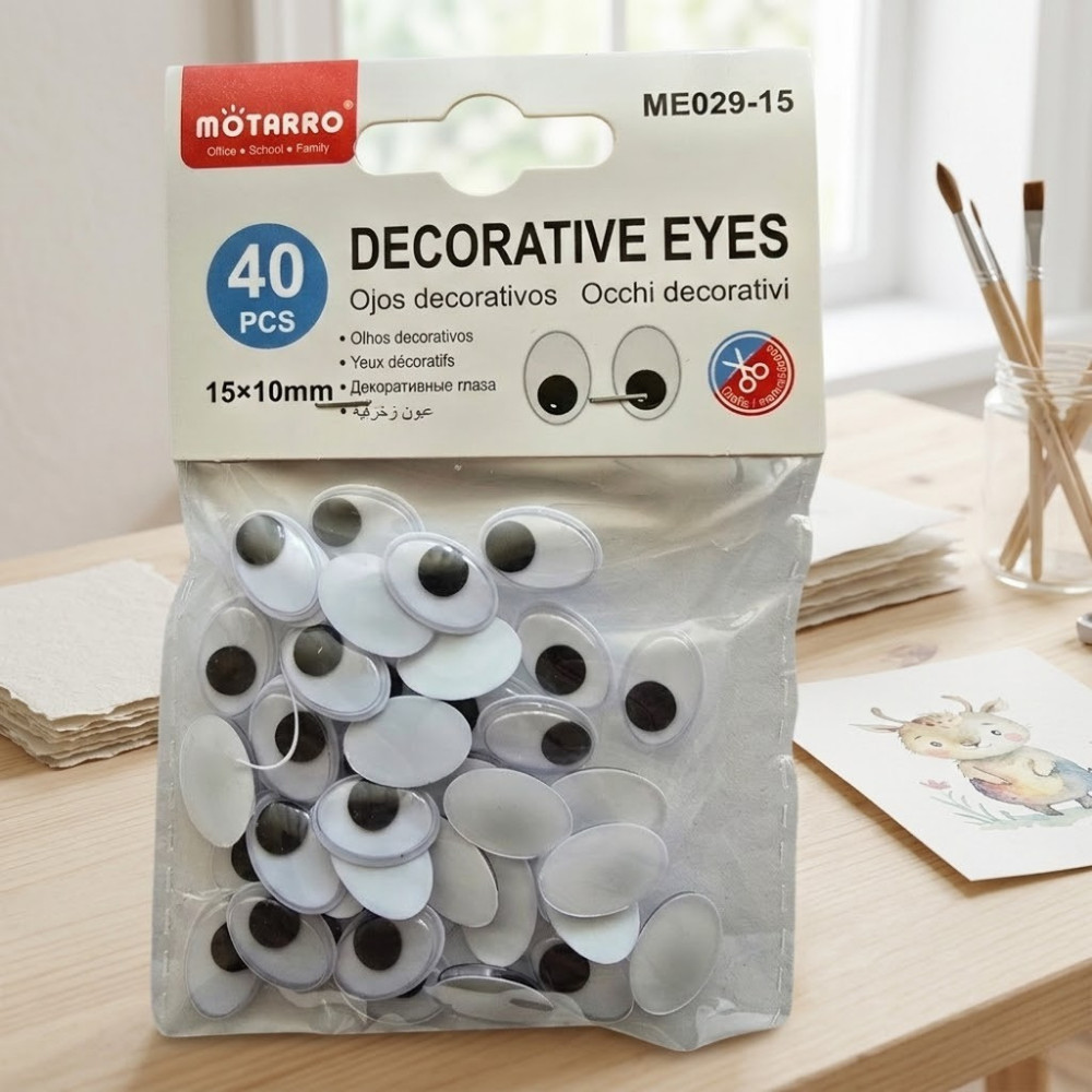 A mozgó szem (vagy ahogy sokan hívják: „googly eyes”) az egyik legegyszerűbb, mégis leglátványosabb dekorációs elem. Az ovális forma különösen jól mutat arcokon, hiszen kicsit kifejezőbb és karakteresebb, mint a hagyományos kerek változat.