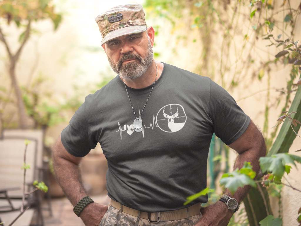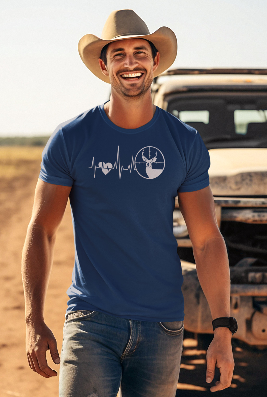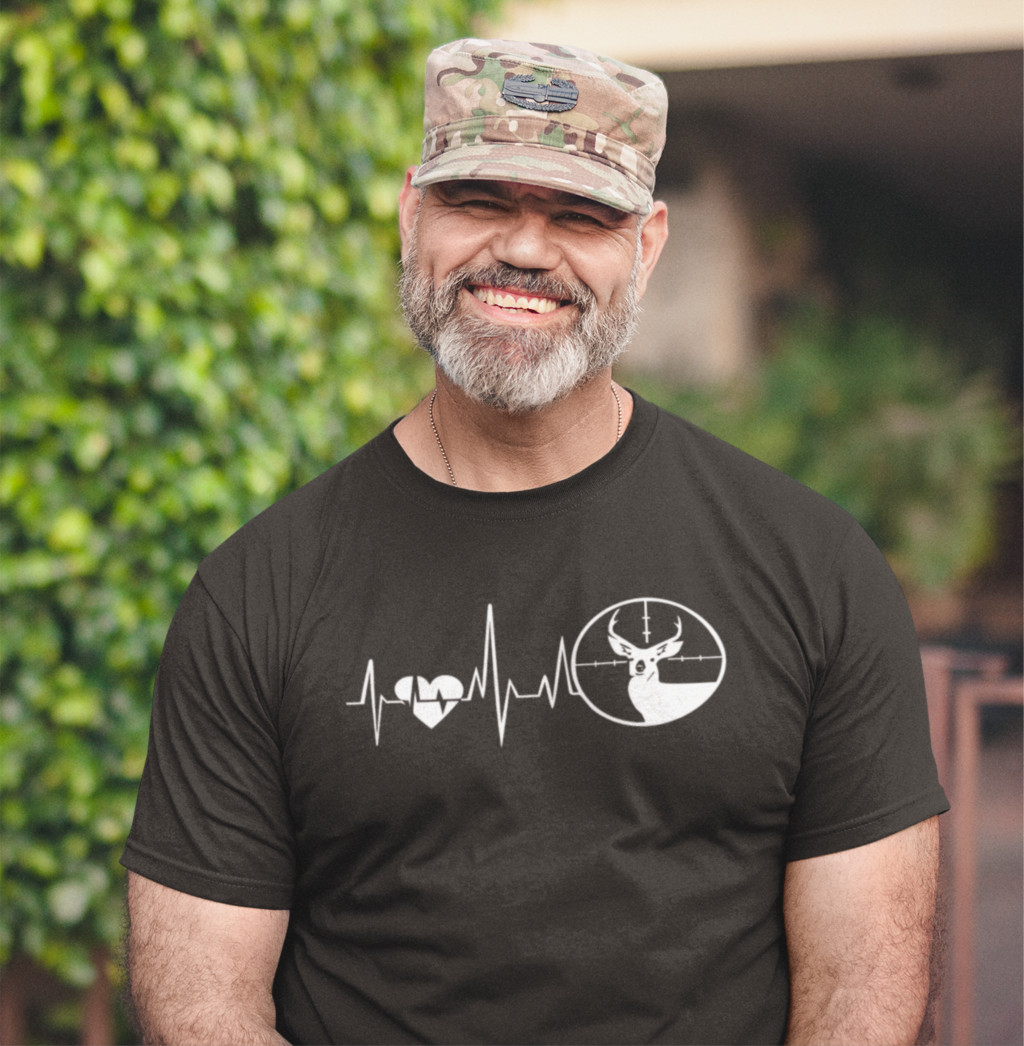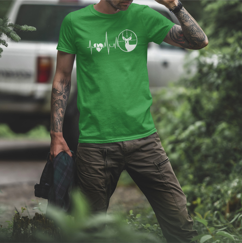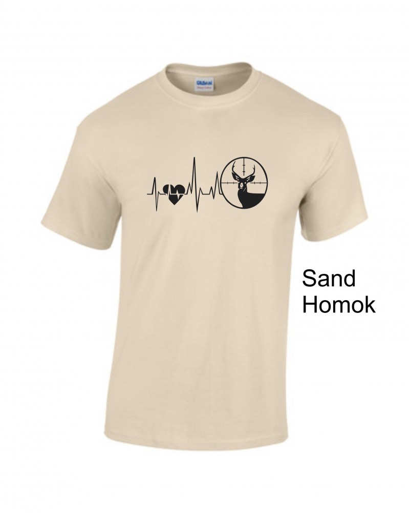 A vadon hívása! Ez a póló humorosan és stílusosan ábrázolja, hogy a vadászat milyen intenzív hatással van a szívverésedre!