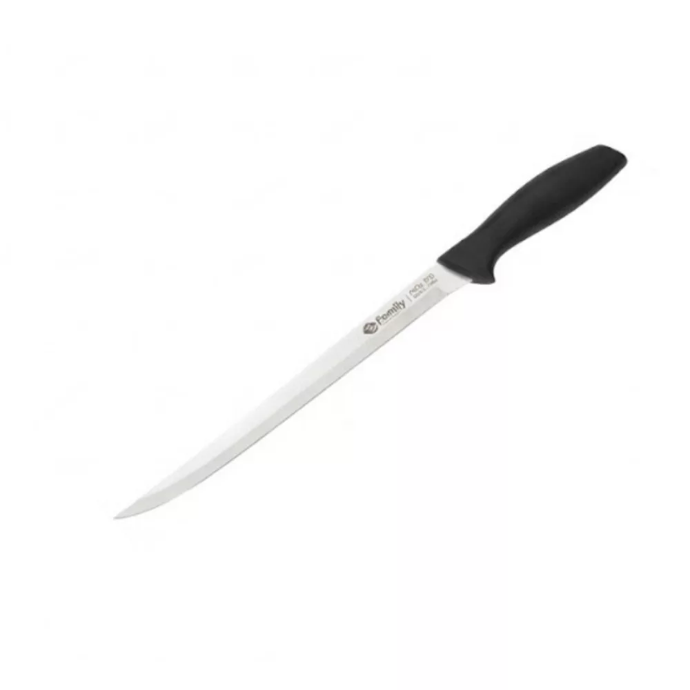Ez a kés a mérete és a kialakítása miatt a konyha egyik legimpozánsabb darabja. Nem csak húsokhoz, de akár nagy méretű piskóták vízszintes elvágásához is remekül használható.