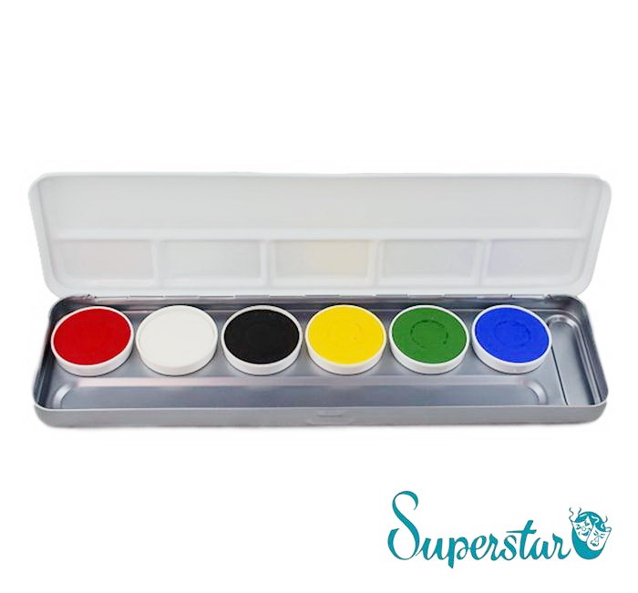 Superstar 6 Színű Arcfesték Készlet – Élénk Színek Paletta: Kompakt Ragyogás, Nagy Hatás!