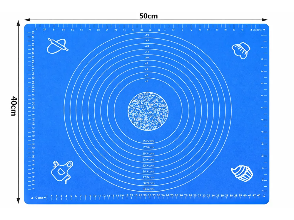 A termék mérete 50 × 40 cm, amely elegendő helyet biztosít a legtöbb sütési előkészítéshez.