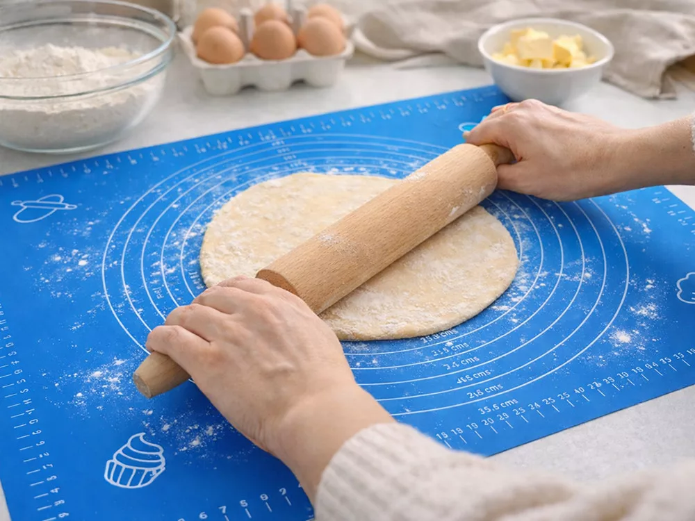 Bár a szilikon felület segíti a tapadás csökkentését, egy kevés liszt segíthet bizonyos tésztatípusoknál.