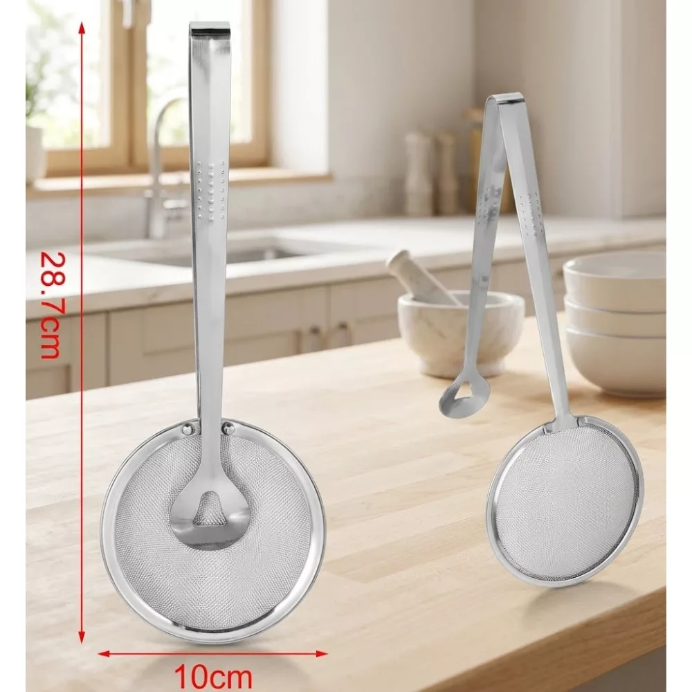 - 2 az 1-ben Funkció: Egyszerre szűrő és fogócsipesz, így kevesebb eszközt kell használnod és mosogatnod.