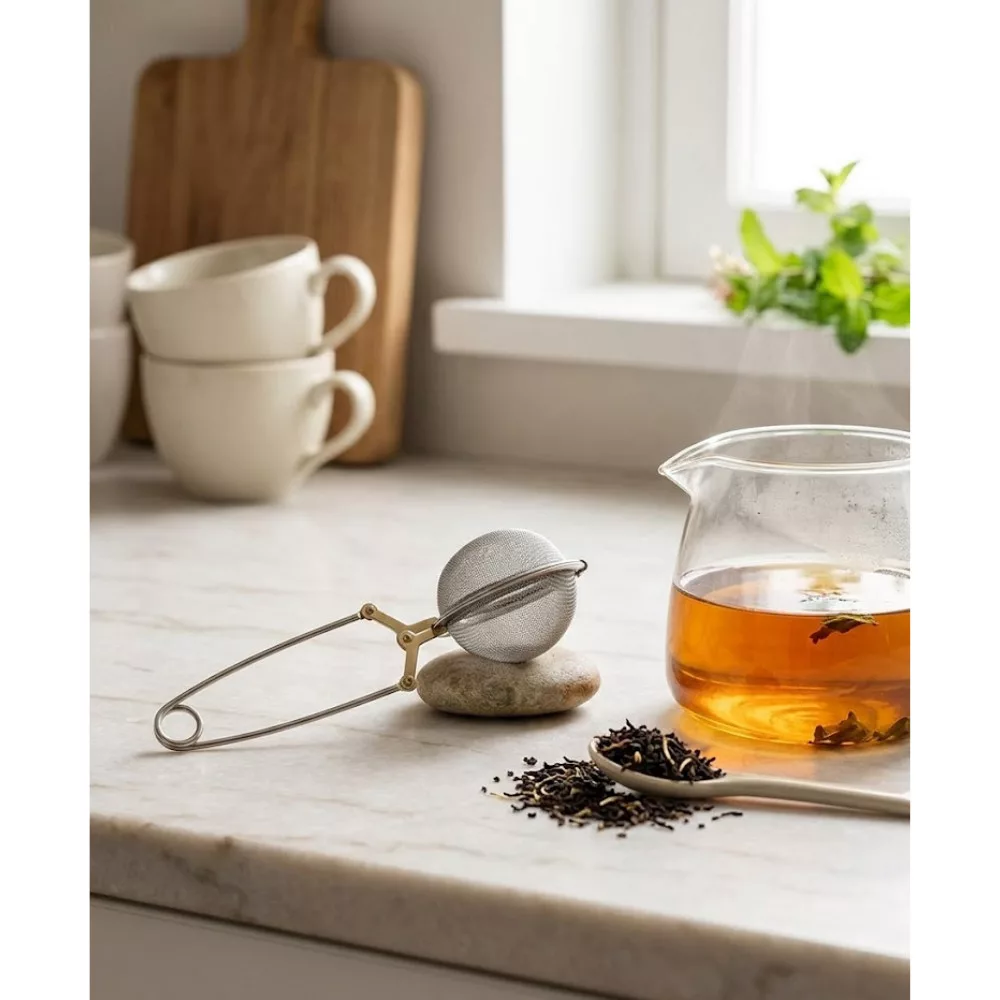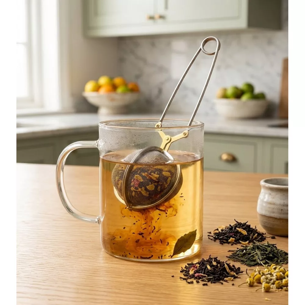 5 cm átmérőjű gömb alakú teaszűrő ideális egy adag teához.