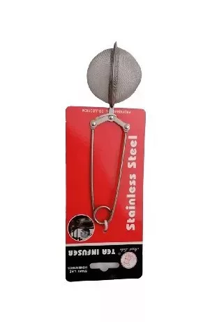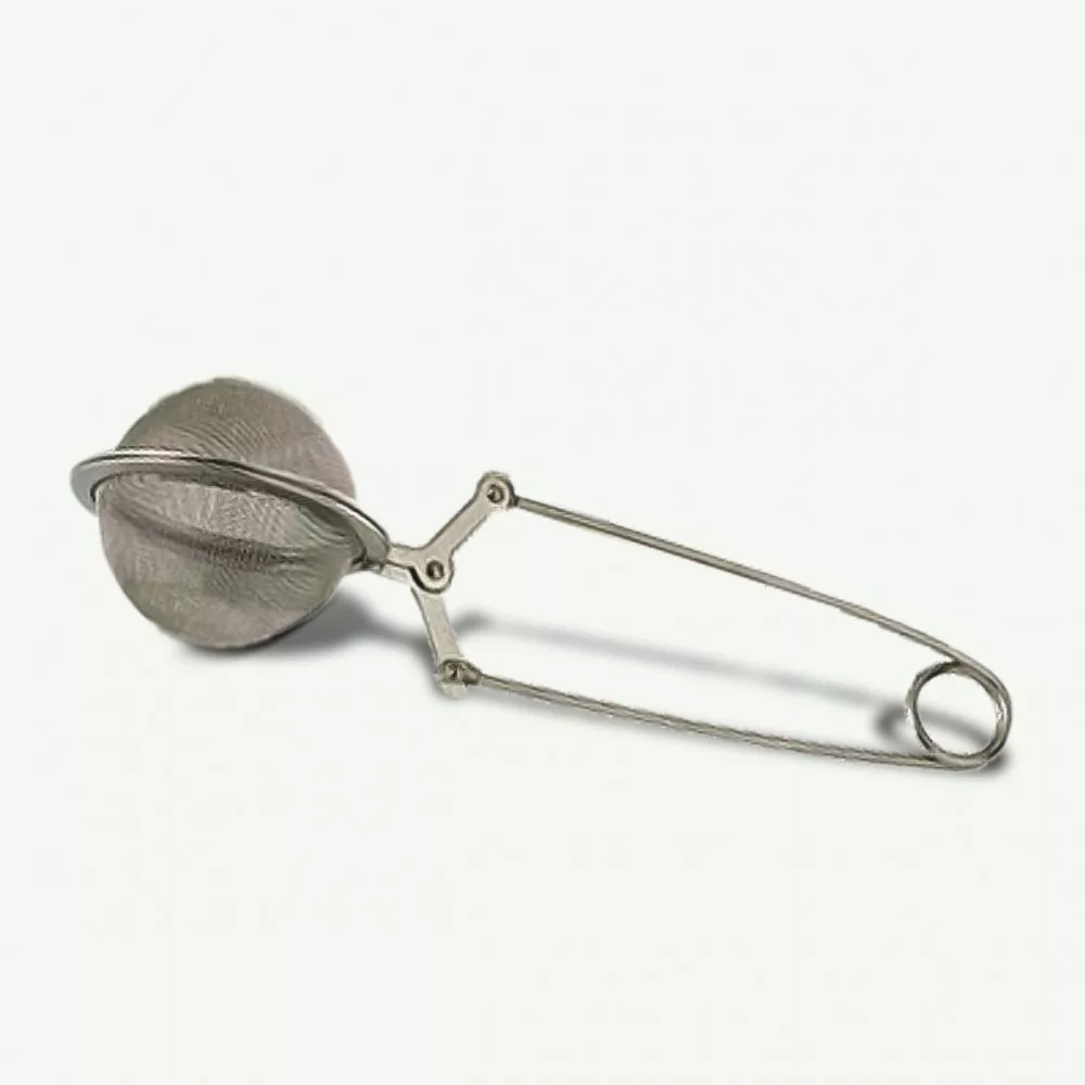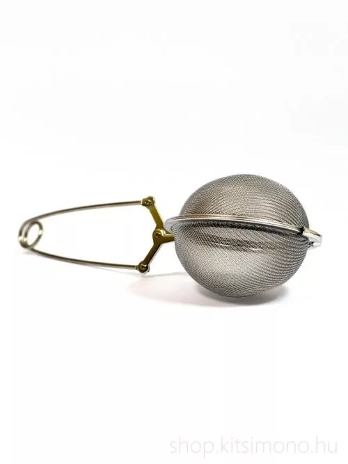 Egy 5 cm-es, finom lyukazású, csipeszes fém teatojás, amely elegendő helyet biztosít a levelek kinyílásához.