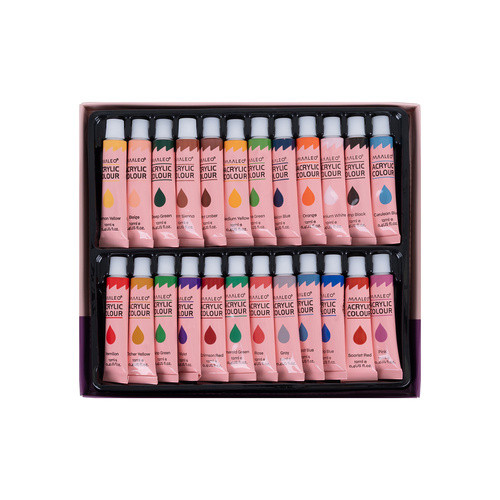 - 24 Színű Akrilfesték Paletta: 24 darab, egyenként 12 ml-es tubus, amelyek intenzív, magasan pigmentált színeket kínálnak. A festékek vízzel hígíthatóak, gyorsan száradnak és kiválóan tapadnak.